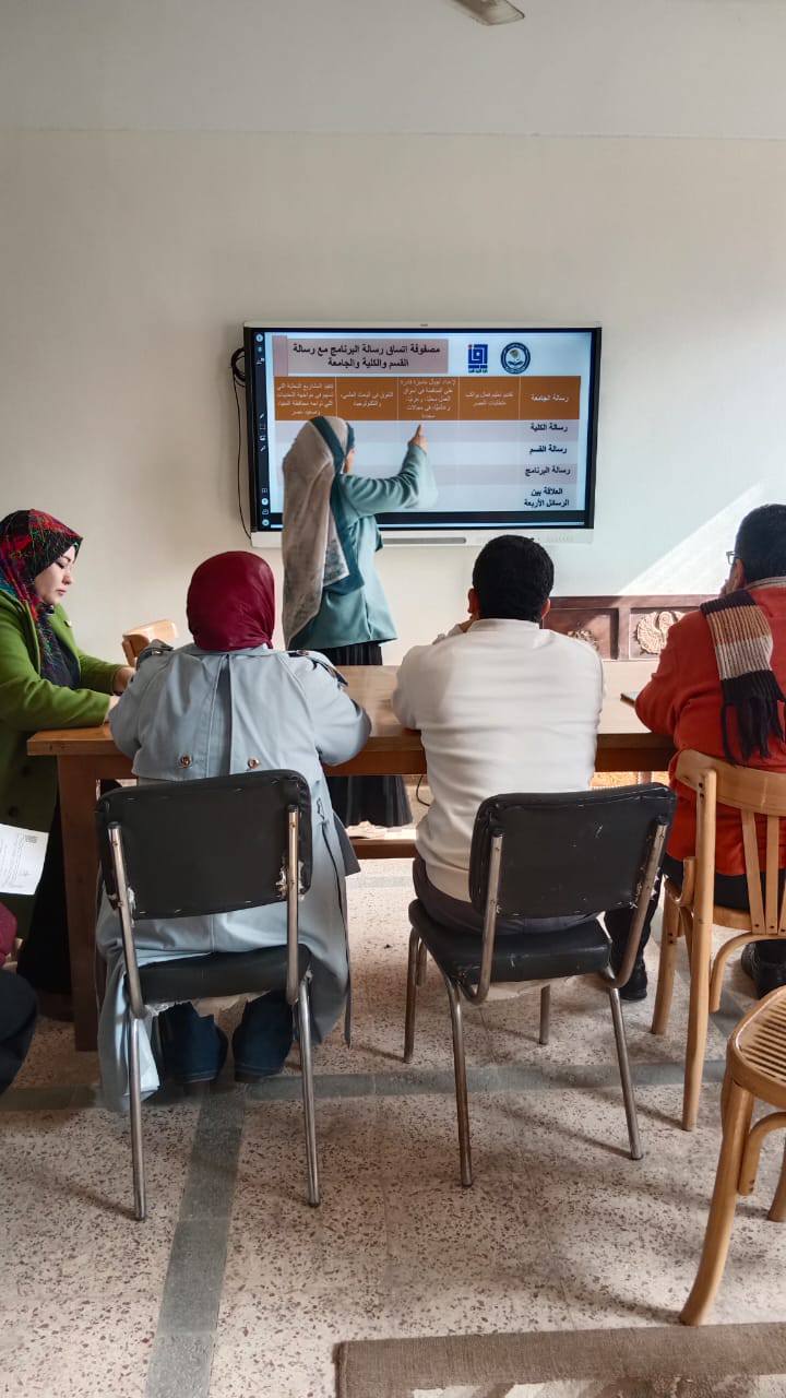 ورشة تدريبية متخصصة بعنوان : "كيفية إعداد وبناء مصفوفات نواتج التعلم، ومصفوفات المعايير الأكاديمية، ومصفوفات المقررات"