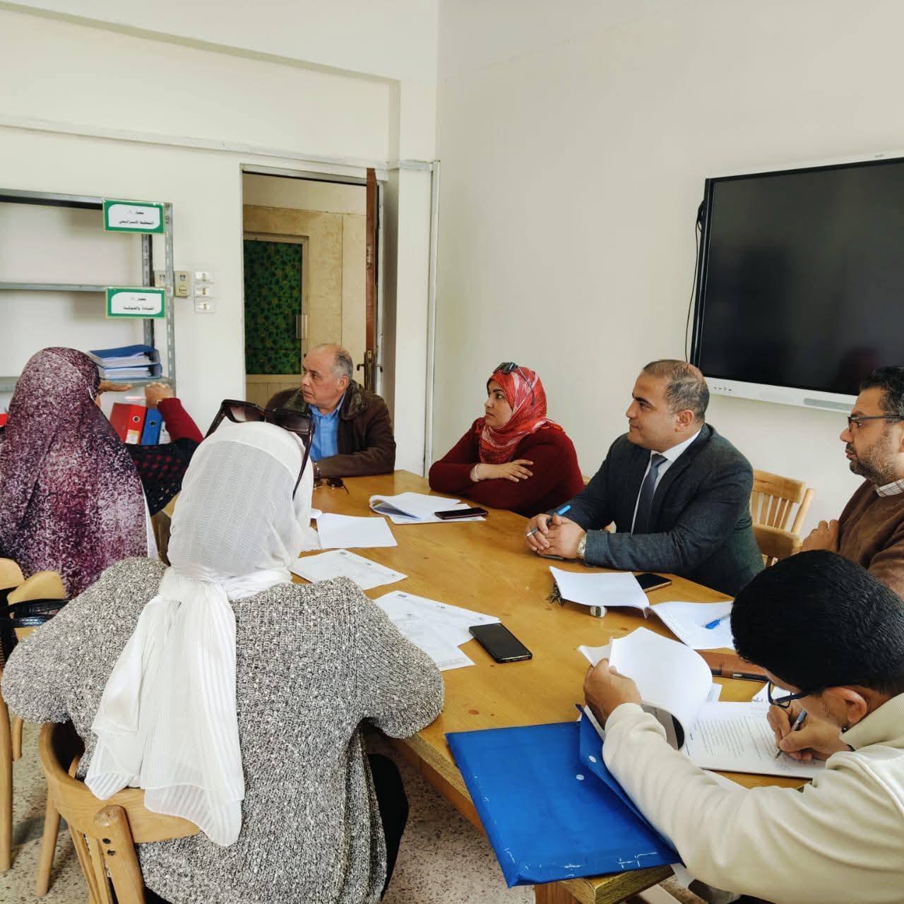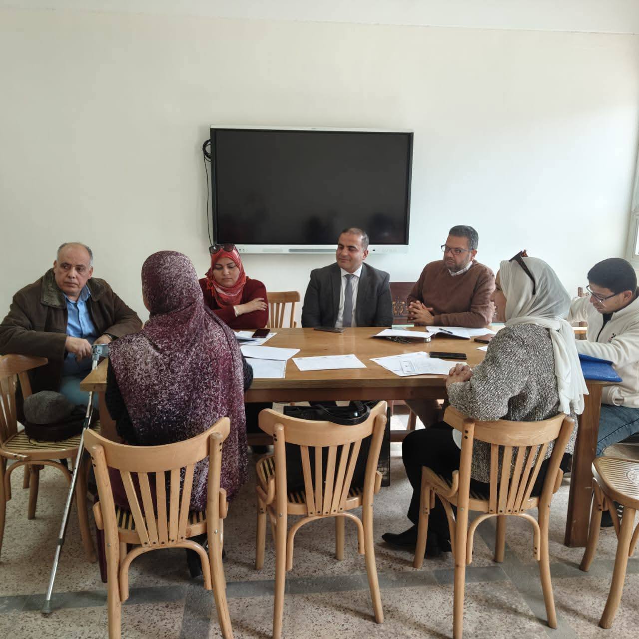 اجتماع للجنة الخاصة بإعداد ومراجعة مصفوفات الاتساق وموائمة نواتج التعلم بالمعايير الأكاديمية برئاسة اد/ أمل ابوزيد العميد السابق للكلية