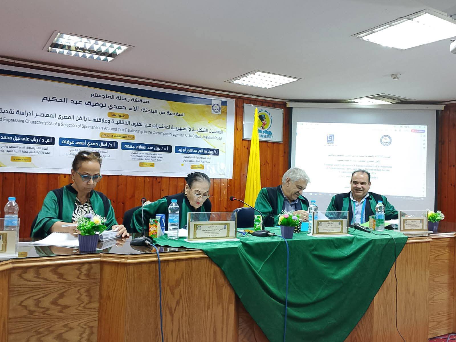 مناقشة الخاصة بالباحثة آلاء حمدي توفيق الباحثة بقسم النقد والتذوق الفني