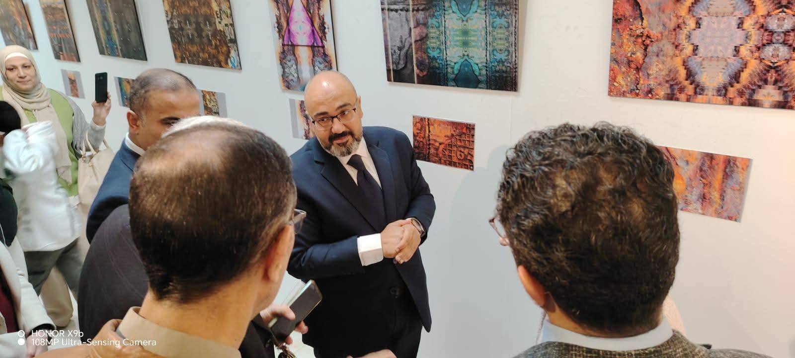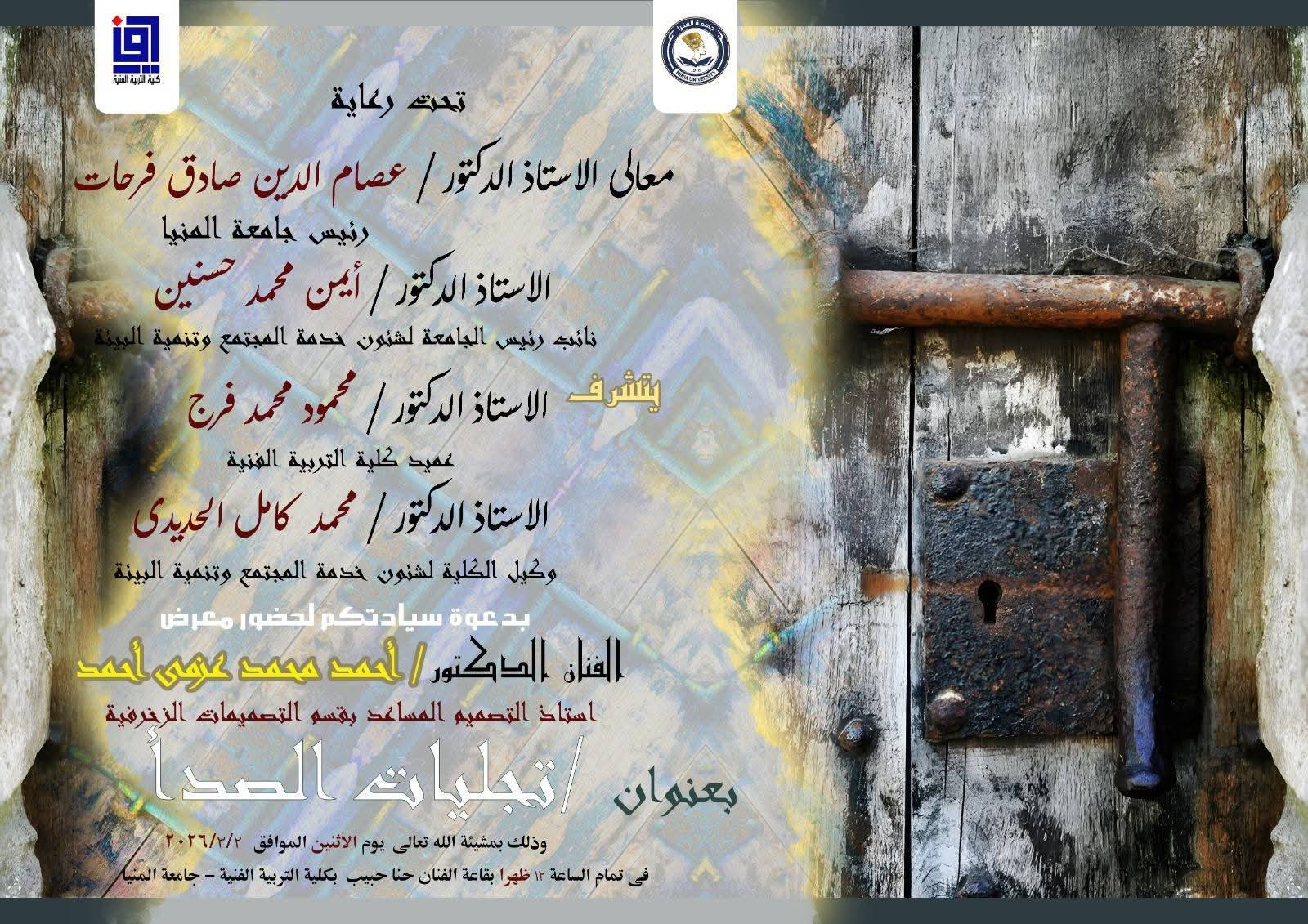 تحت رعاية الأستاذ الدكتور/ عصام الدين صادق فرحات – رئيس جامعة المنيا، والاستاذ الدكتور/ أيمن حسنين نائب رئيس الجامعة لشئون خدمة المجتمع وتنمية البيئة افتتح الأستاذ الدكتور/ محمود محمد فرج – عميد كلية التربية الفنية،وبحضور الأستاذ الدكتور/ محمد كامل – وكيل الكلية لشئون خدمة المجتمع وتنمية البيئة،والأستاذة الدكتورة/ ليالي عبادة – وكيل الكلية لشئون الدراسات العليا والبحوث،ونخبة من السادة أعضاء هيئة التدريس بالكلية معرض "تجليات الصدأ" للفنان الدكتور/ أحمد محمد عزمي – أستاذ التصميم المساعد بقسم التصميمات الزخرفية بالكلية. في هذا المعرض، يتناول الفنان أحمد عزمي العناصر الشكلية والجمالية لحالات التأكسد السطحي للمعادن (الصدأ)، وما تحمله من ثراء لوني وتنوع في البنى والملامس والتكوينات العفوية التي تصوغها الطبيعة عبر الزمن. ويقدم الفنان قراءة تشكيلية معاصرة لهذه الظاهرة الطبيعية، محاولًا استثمار ما تنتجه من علاقات لونية وخطية ومساحات عضوية في بناء وتصميم تكوينات زخرفية رقمية مبتكرة. وتكشف الأعمال عن حس بحثي وتجريبي واضح، حيث تتحول آثار الزمن والتآكل إلى مصدر إلهام بصري، يُعاد صياغته في قالب تصميمي يجمع بين الجمال الطبيعي والمعالجة الرقمية المعاصرة، ليؤكد قدرة الفن على اكتشاف القيمة الجمالية في التفاصيل المهملة وتحويلها إلى رؤى إبداعية جديدة.