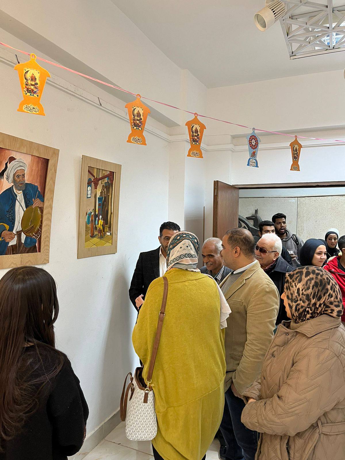 والأستاذ الدكتور أيمن حسنين نائب رئيس الجامعة لشئون خدمة المجتمع وتنمية البيئة، افتتح الأستاذ الدكتور محمود محمد فرج عميد كلية التربية الفنية – جامعة المنيا، معرض "أجواء رمضانية" لطلاب الفرقة الثانية، وذلك بحضور الأستاذ الدكتور محمد كامل وكيل الكلية لشئون خدمة المجتمع وتنمية البيئة، والأستاذة الدكتورة ليالي عبادة وكيل الكلية لشئون الدراسات العليا والبحوث ورئيس قسم الرسم والتصوير، إلى جانب نخبة من السادة أعضاء هيئة التدريس بالكلية. ويأتي المعرض تحت إشراف الدكتورة هبة فؤاد المدرس بقسم الرسم والتصوير بكلية التربية الفنية – جامعة المنيا، حيث قدّم طلاب الفرقة الثانية مجموعة من الأعمال التصويرية المتميزة التي جسدت أجواء شهر رمضان المبارك وما يحمله من قيم روحانية واجتماعية راسخة في وجدان المجتمع المصري. وتناولت اللوحات الفنية العديد من المشاهد المرتبطة بالشهر الكريم، مثل مظاهر الاحتفال بقدوم رمضان، والفوانيس والزينة الشعبية، وموائد الإفطار، وأجواء التراويح والعبادات، إلى جانب استلهام عناصر من التراث المصري المرتبط بالشهر الفضيل. وقد عكست الأعمال رؤية فنية مبدعة للطلاب، وقدرتهم على توظيف اللون والتكوين للتعبير عن الطابع الروحاني والإنساني الذي يميز هذه المناسبة.