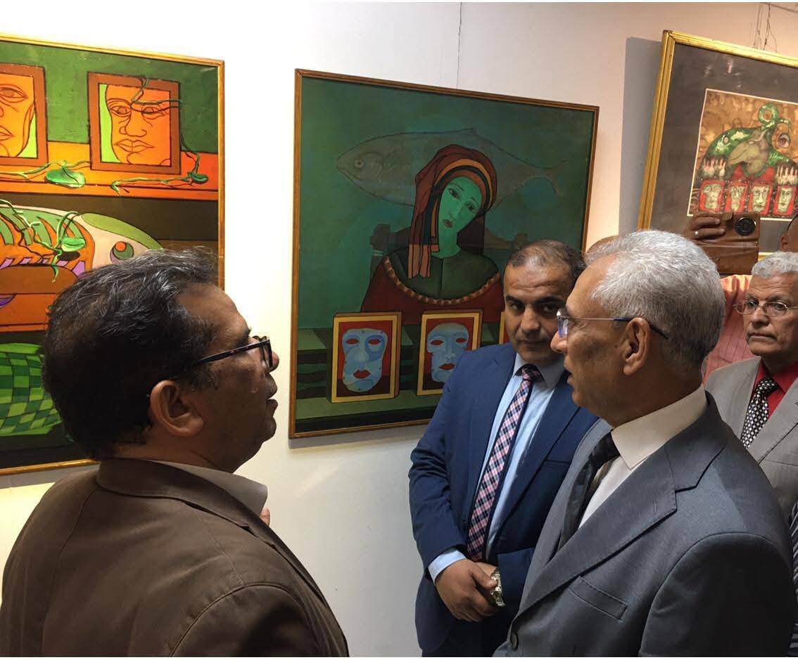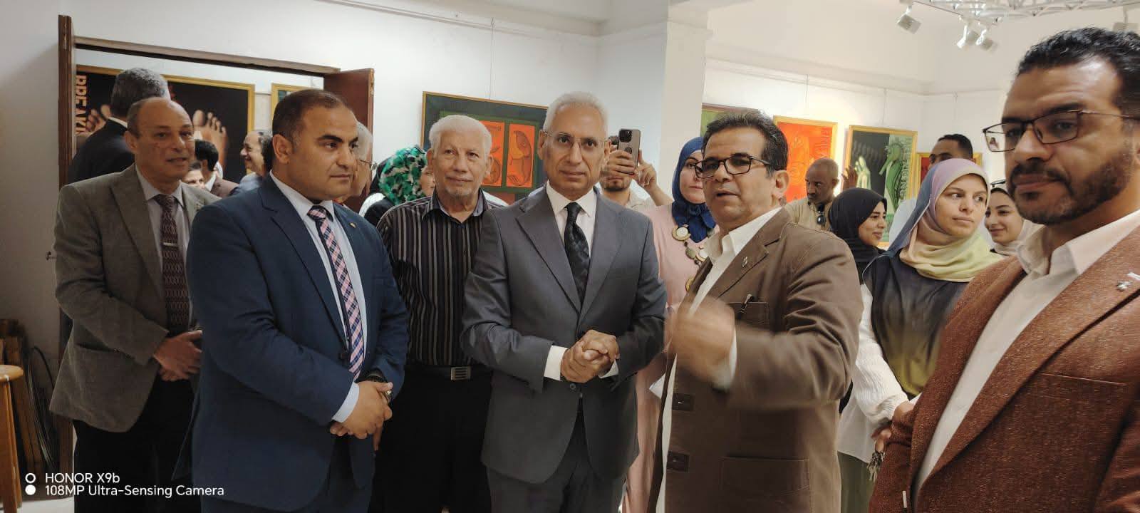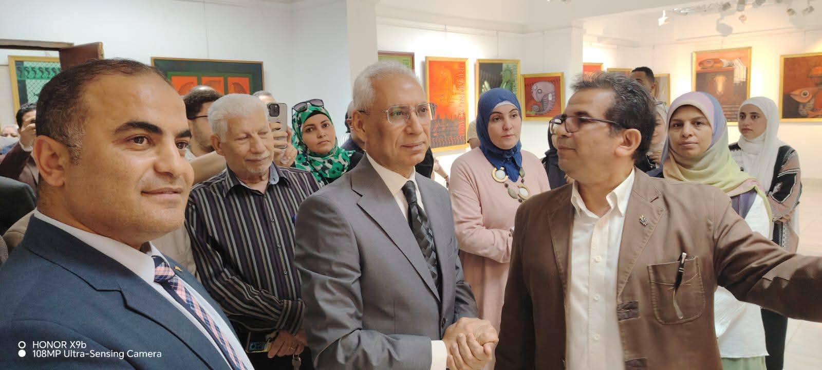 رئيس جامعة المنيا يفتتح المعرض الاستعادي للفنان الأستاذ الدكتور/ محمد عبد اللاه بكلية التربية الفنية
