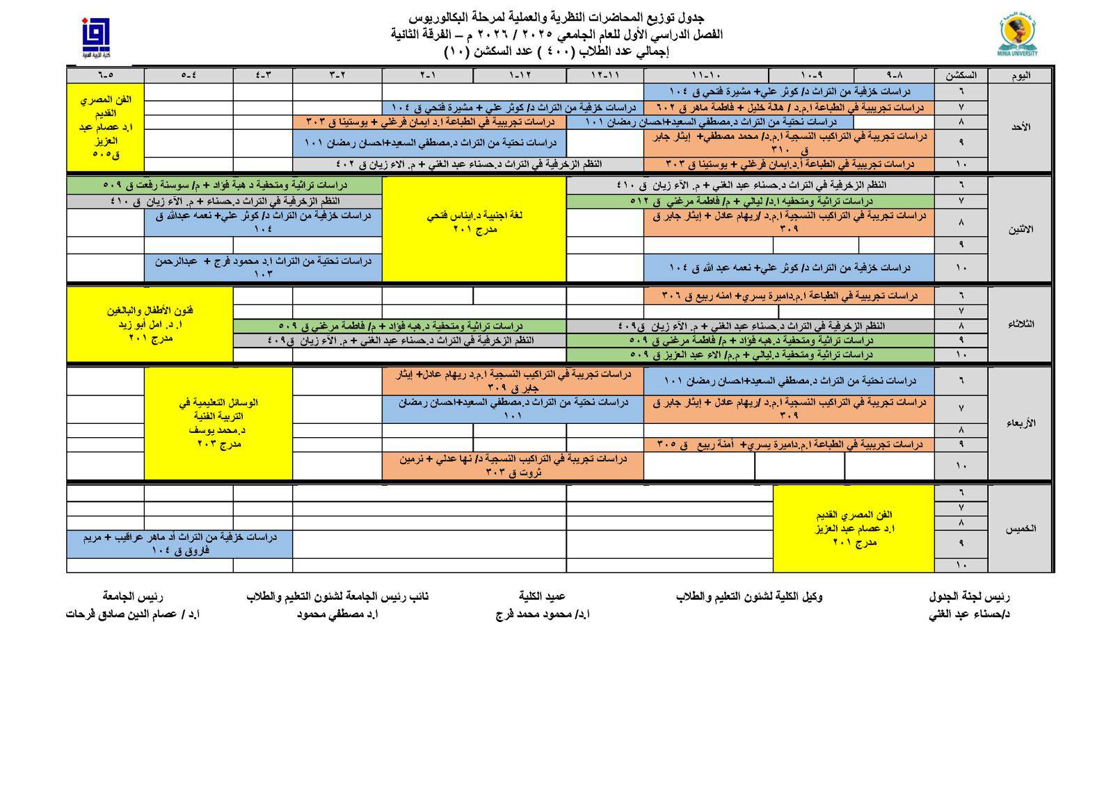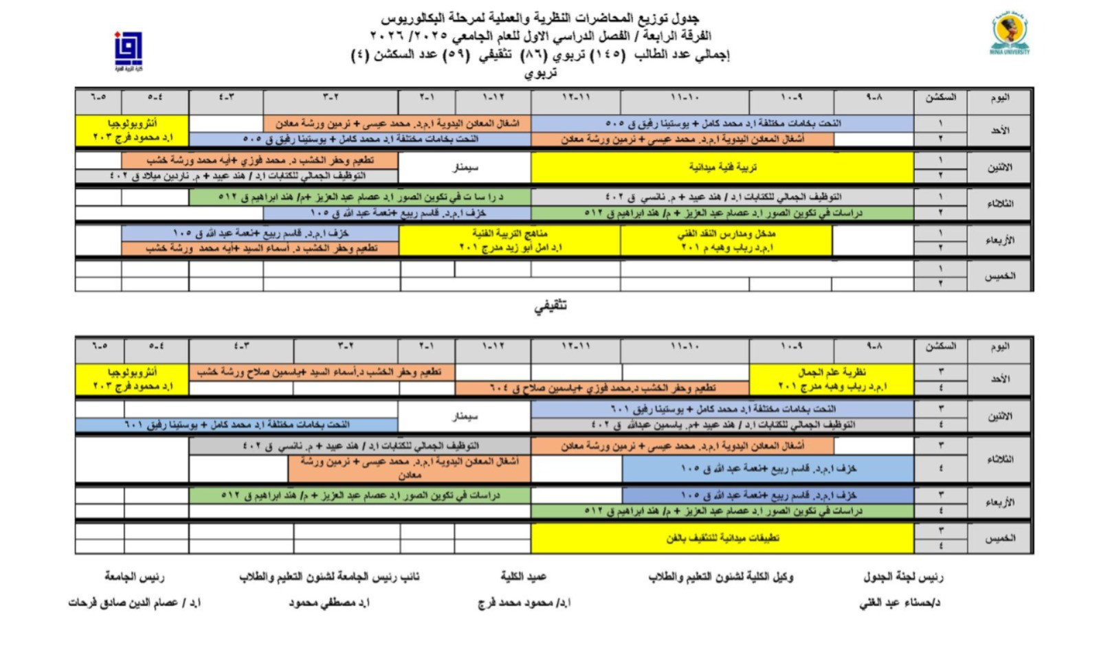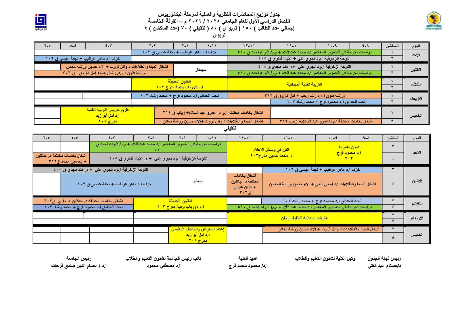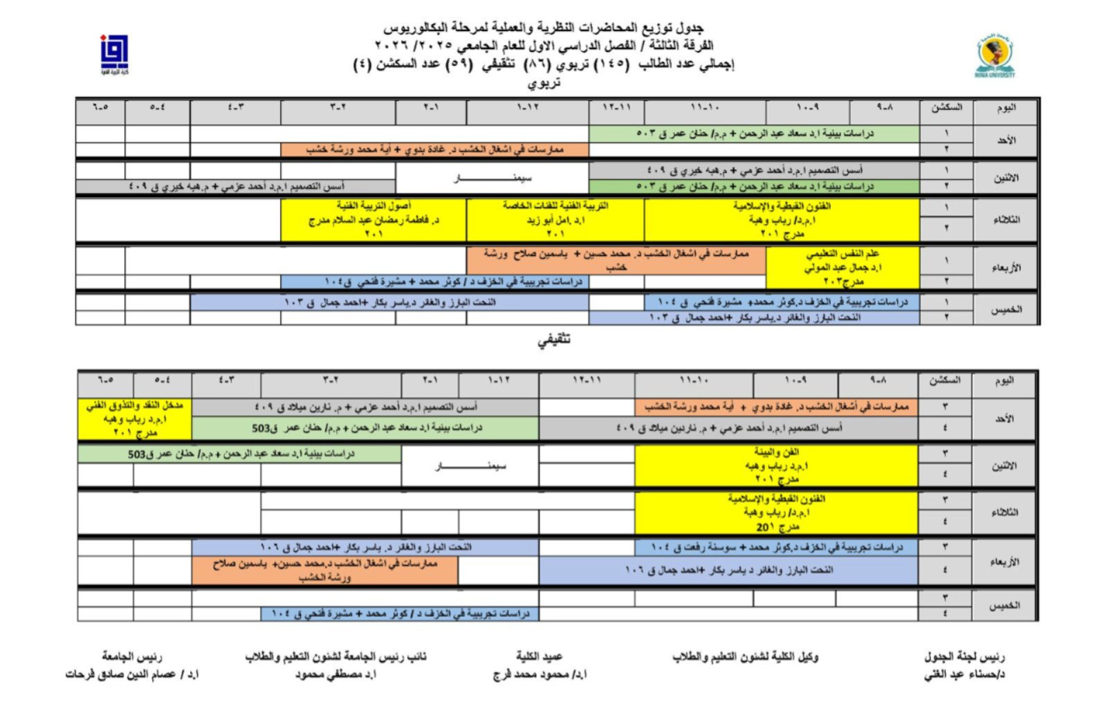 The Faculty of Art Education announced the academic schedules for bachelor students for the academic year 2025/2026.